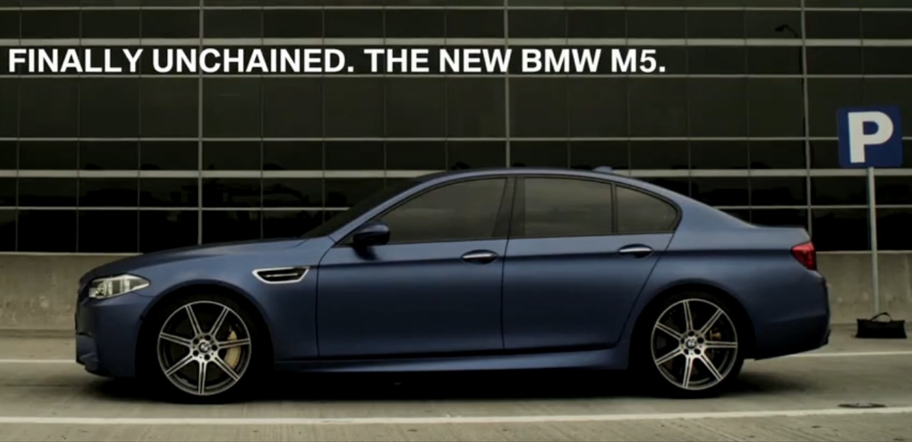 FINALLY UNCHAINED. THE NEW BMW M5. Following the Django Unchained movie theme, BMW releases a new commercial featuring a “chained” 2014 BMW M5.
